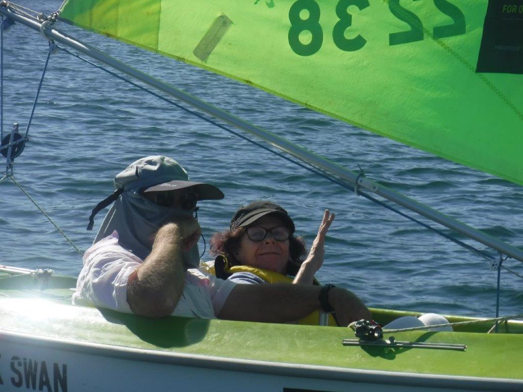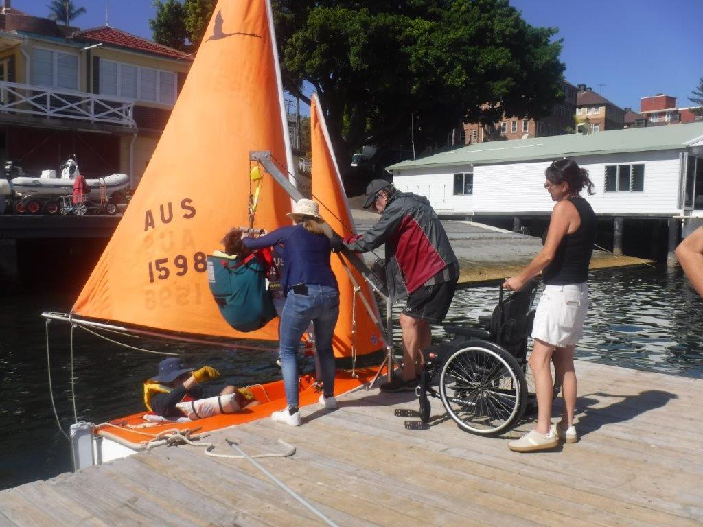A beautiful day isn’t enough to make a success at Manly Sailability, we also need participants, a great bunch of volunteers and some wind! Participants and volunteers a-plenty, but wind looked sketchy with a very slight Sou’Easter, then nothing, and then just in time the Nor-Easter graced us with a few puffs.